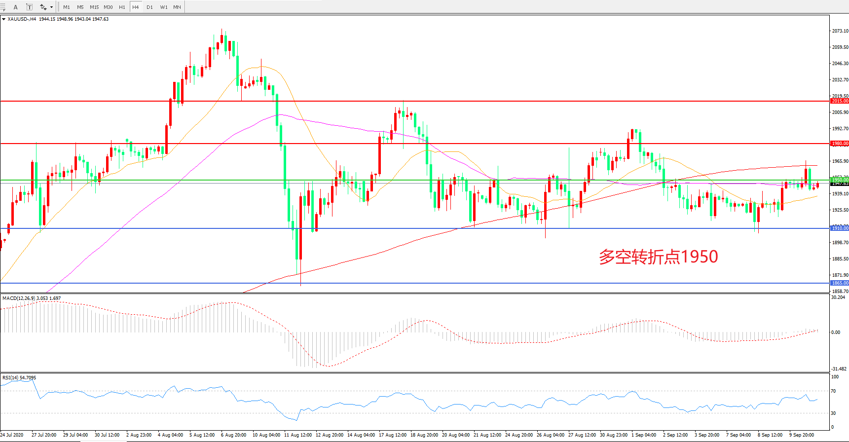 备选策略: 在1950.00之下看跌,目标1910.00 1865.00