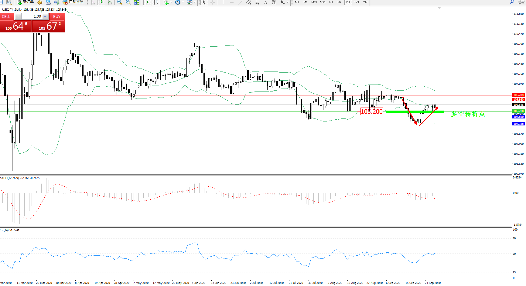 美元兑日元升0.15%至105.66,盘中触及两周高点;未来数月美元兑日元可能整理于107.00附近,尽管全球央行维持鸽派立场可能改善市场情绪,但可能打压日元,市场维持关注处在僵局的美国财政刺激计划及国际贸易紧张局势,再加上美国大选存在不确定,料提振日元;投资者非常警惕美国财政刺激计划引起市场失望情绪以及充满争议的美国大选所引起的市场波动加大,这些尾部风险可能引发重大政治和社会动荡,并导致市场波动率飙升,通常伴随避险买盘加大;另一方面,日本央行料维持鸽派立场,随着风险对冲得以实现,或推动美元兑日元走高。