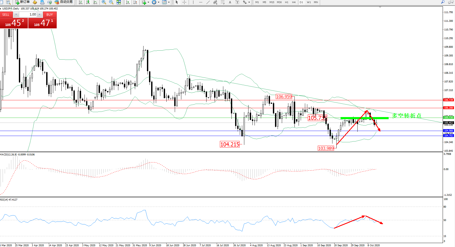 多空转折点:105.735