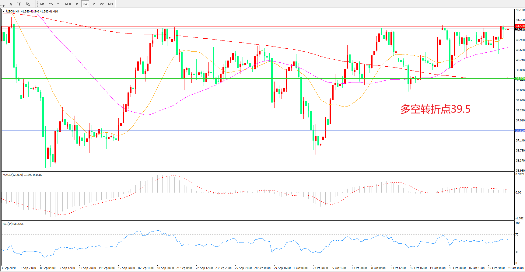 周三(10月21日)凌晨,根据美国石油协会公布的数据显示,当周API原油库存意外增加58.4万桶,美国WTI原油延续高位震荡,收报41.38美元/桶。值得注意的是,EIA在报告中指出,未来几个月农业和住宅行业需求的增加将有助于减少精炼油库存,但不足以推高油价,晚间EIA的数据表现仍是市场关注的重心。