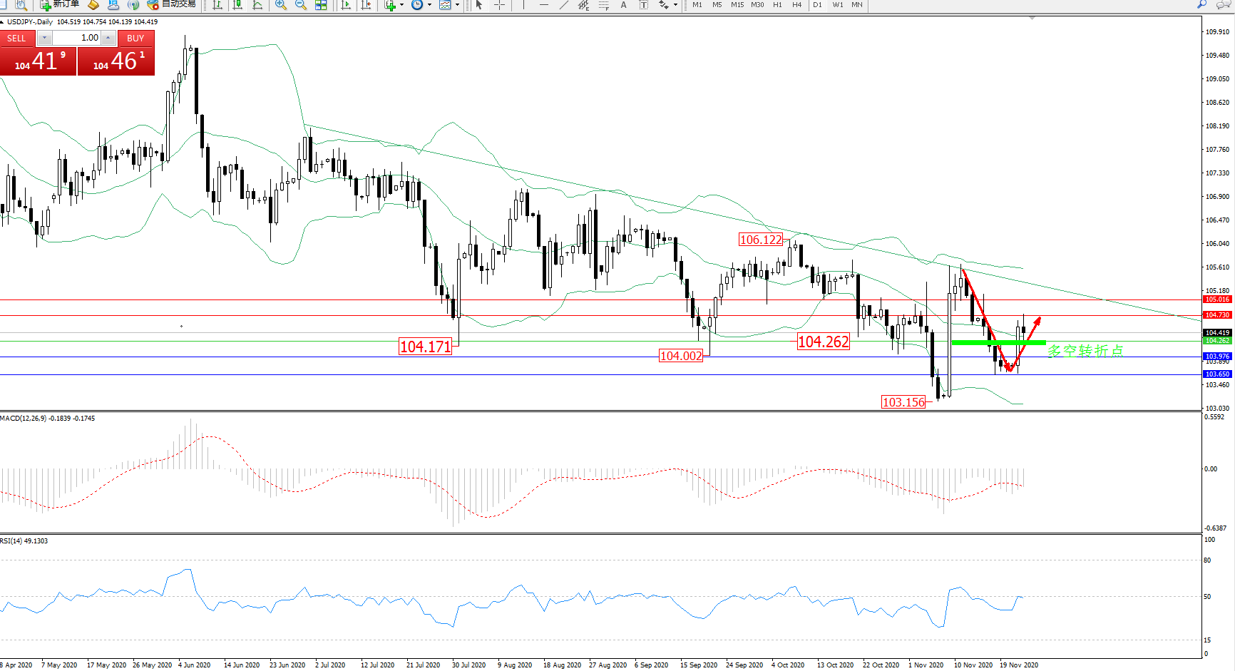 美元兑日元跌0.08%,报104.44;日内全球投资仍进一步看好疫苗大规模投产应用对于国际经济环境的潜在拉动刺激,这令市场整体风向基调偏暖,继续打压了避险日元的买需,使美元兑日元跌幅受限。上周日本财务大臣麻生太郎讲话首次对日元汇价过强的状况表现担忧之后,投资者对日本央行此后入市干预的预期也在进一步升温,美元兑日元自日内低位反弹30点,因风险偏好情绪进一步回暖,投资者更看好新冠疫苗此后全面应用对于经济的拉动提振效应,这也令美股道指股指期货盘前涨幅扩大至1%。