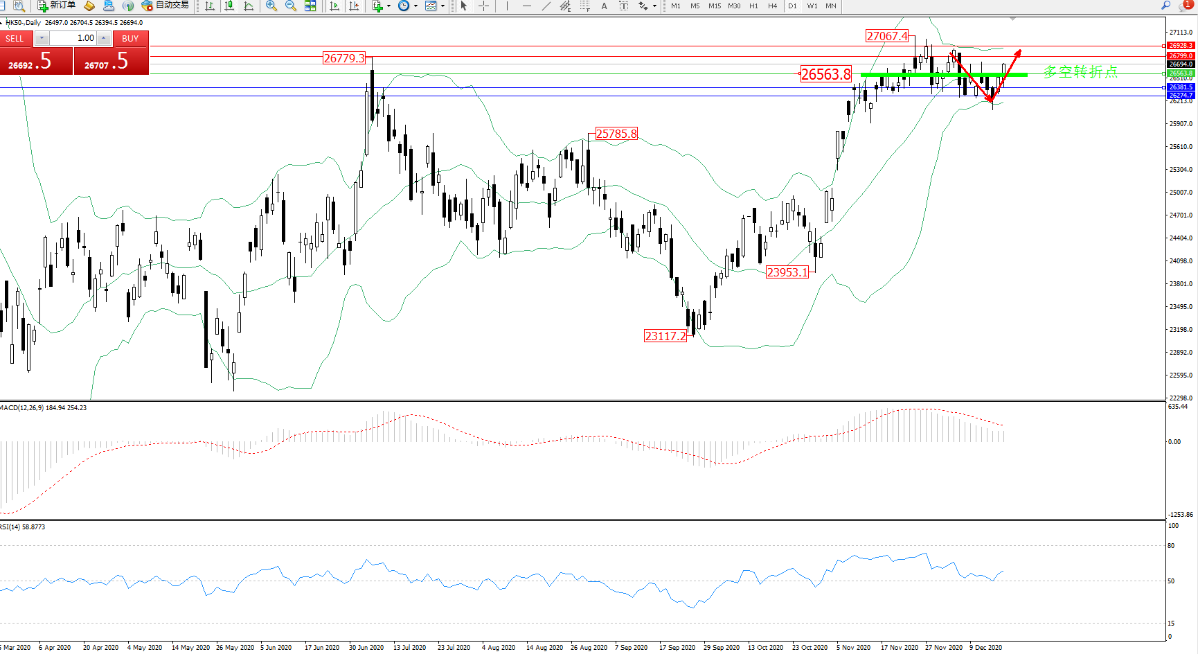 技术点评:多头动力延续布林带指标通道中上轨区间持续震荡上扬后,高位维持窄幅整理平移中,处于布林带指标通道内震荡,布林带指标呈收口走势持续平移,低位长时间处于中下轨区间徘徊后,多头动力伺机入场,强势上扬突破中轨进入中上轨区间上行,MACD指标处于多头区域高位弱势整理回撤后开始整理平移,RSI指标处于多头区域窄幅震荡回撤至50均衡线后得到支撑开始反转向上移动中;