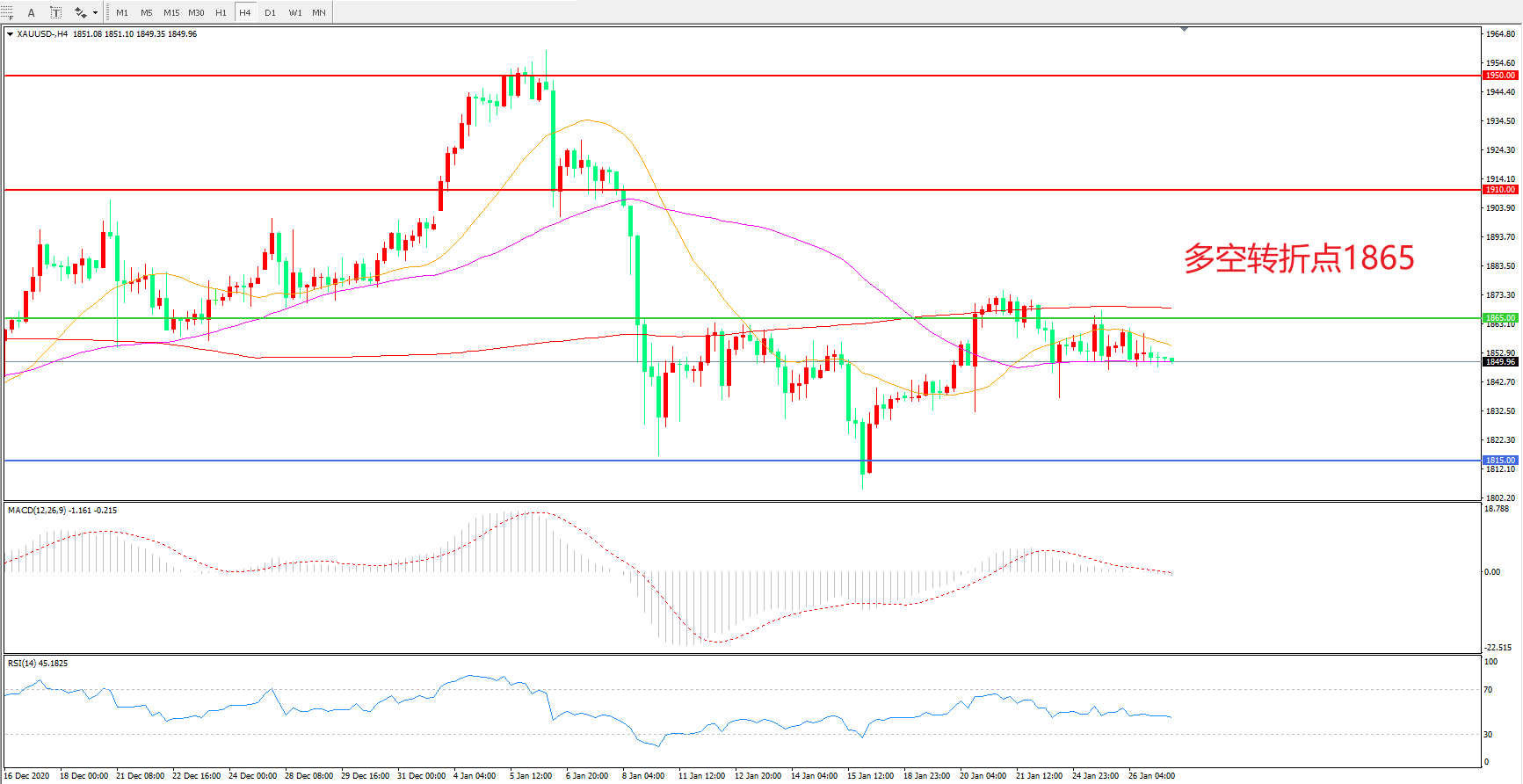 交易策略:在1865.00之下看跌,目标1815.00 1765.00