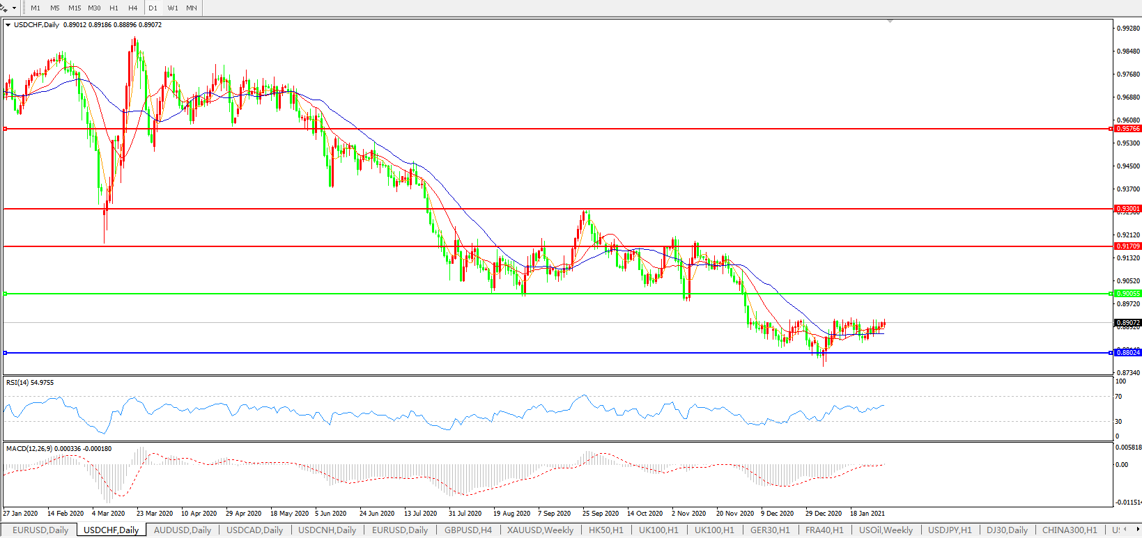 美元兑瑞郎USDCHF    日线图: