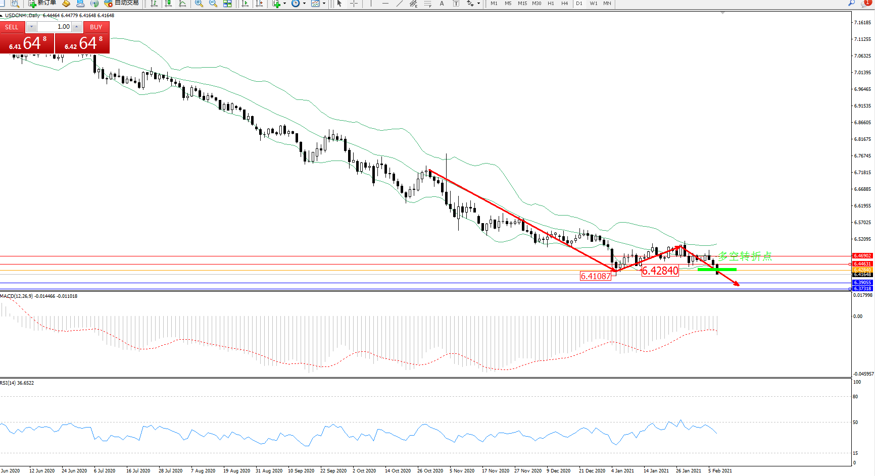 备选策略:6.42840上方看涨,目标6.44631、6.46902
