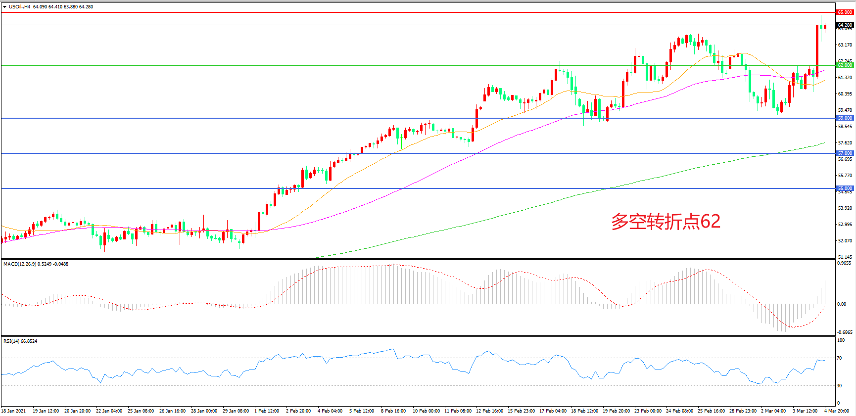 交易策略:在62.00之上看涨,目标65.00    68.00