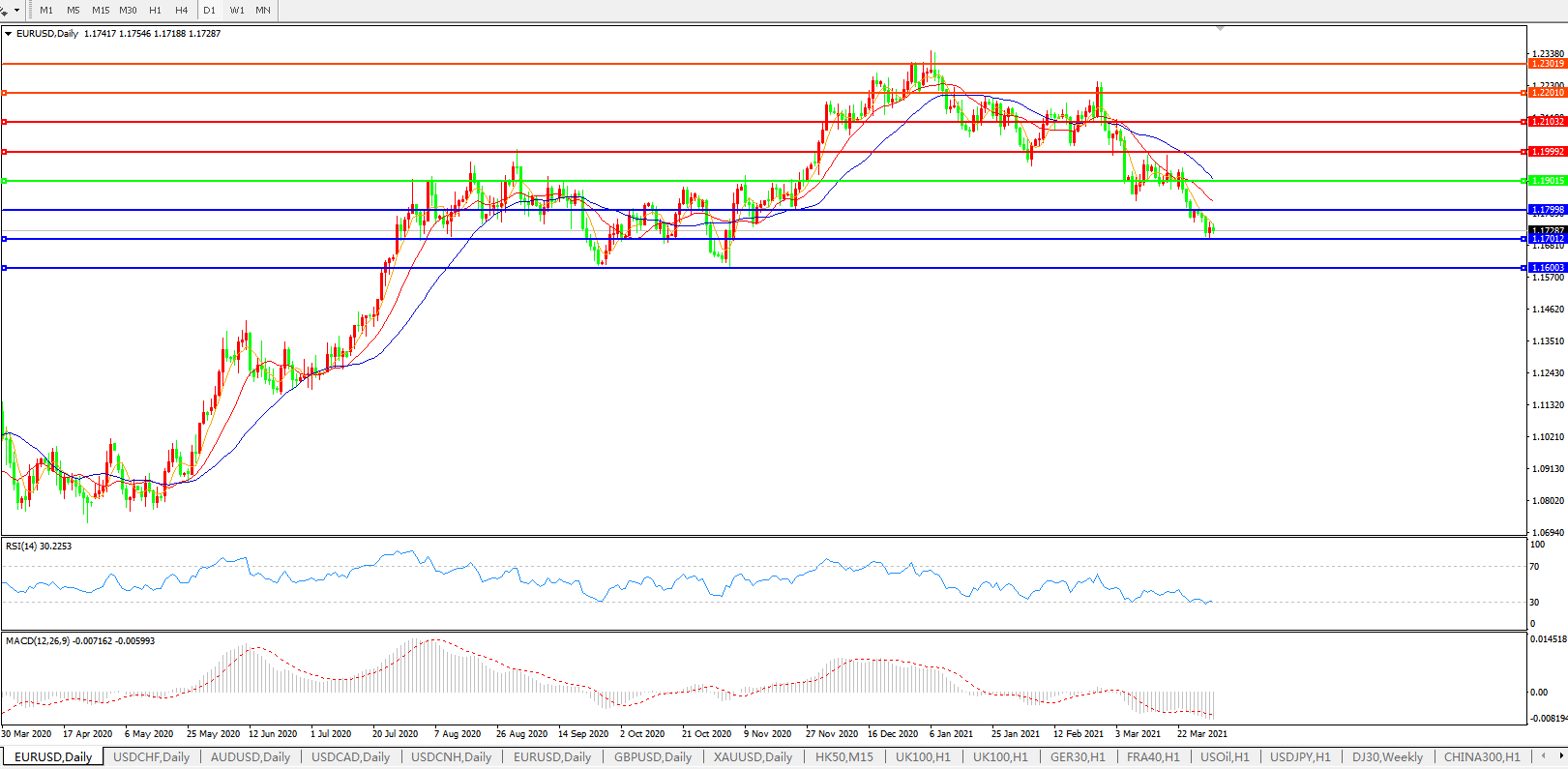 交易策略:1.1900下方看跌,目标1.1800、1.1700