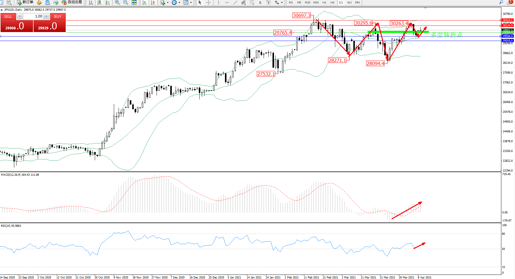 日经225指数4月9日(周五)收盘上涨80.02点,涨幅0.27%,报29789.00点。日本政府的新冠病毒感染症对策小组会会长尾身茂9日在众院厚生劳动委员会上,被问及当天将敲定的适用于东京都等地的“防止蔓延等重点措施”是否有可能切换为紧急事态宣言。他回答称:“如果效果不佳,探讨紧急事态宣言是理所当然的。”尾身指出,如果在适用重点措施后,夜间人流不减等的势头持续,那么“感染人数会不断增加”。他认为若新增感染人数等指标接近“第四阶段”(疫情爆发式扩大),就应该探讨发布紧急事态宣言。日本内阁官房长官加藤胜信:专家小组针对东京、京都和冲绳的疫情防控措施达成一致。