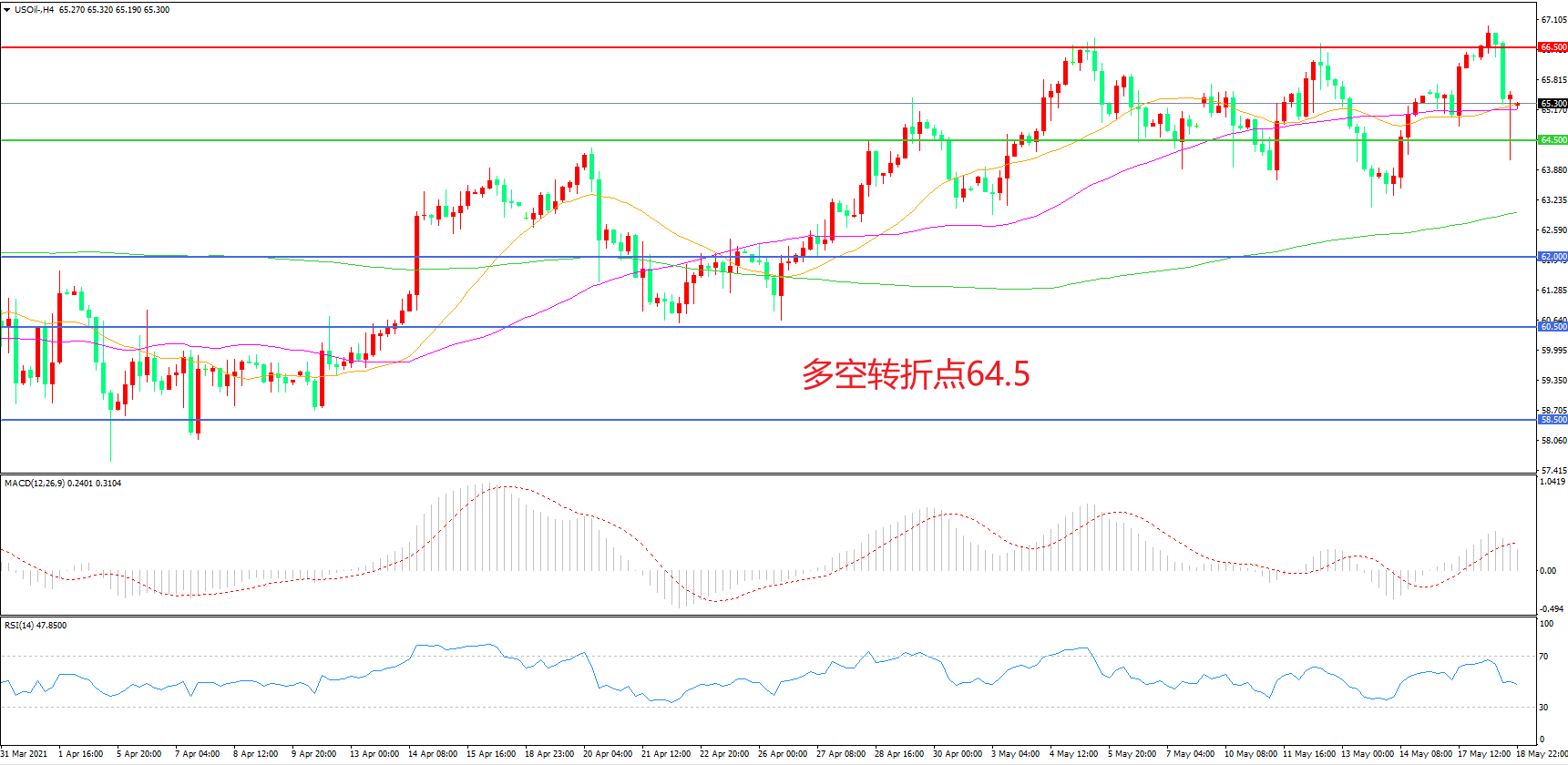 周二(5月18日),有媒体报道称俄罗斯官员透露伊核协议会谈取得重大突破,国际油价一度大幅跳水,随后该官员澄清并未指当前会谈有大突破,并认为还有些问题尚未解决,美国WTI原油探底回升,收报65.27美元/桶。从本月初开始,伊朗核协议相关方在维也纳举行会晤,讨论美伊两国恢复履行伊核协议义务问题。若敲定协议,相关各方可能在三年前特朗普执政时退出伊核协议后重启该协议谈判。