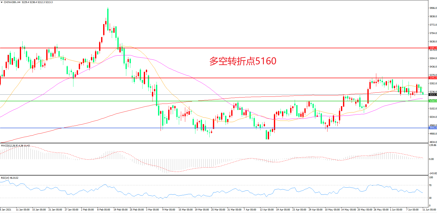 上周五(6月11日),两市开盘小幅高开,随后快速走低,沪深300高位“跳水“,收报5213.3点。两市成交额突破一万亿元,北向资金净卖出30.32亿元。随着通胀预期的进一步提升,市场剩余流动性较之前有一定收紧压力,整体性机会可能有限,6月17日美联储议息会议是关键时点,若美联储讨论缩减购债规模,对股市估值或产生负面冲击。