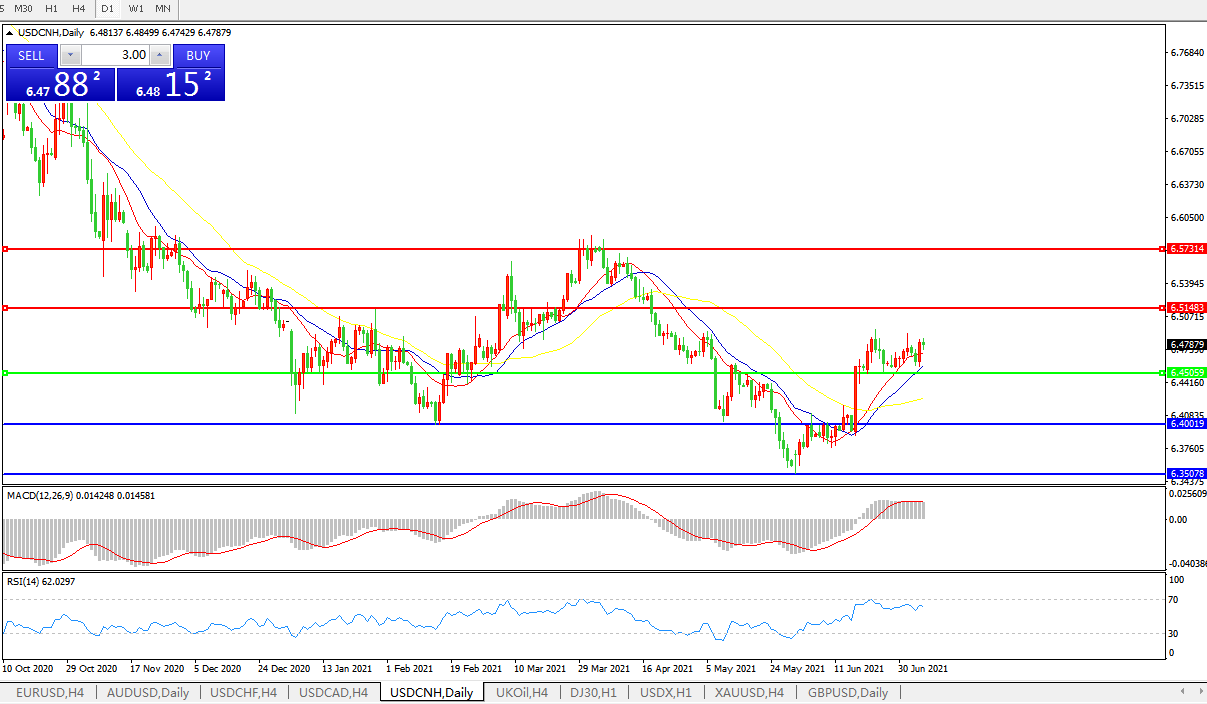 交易策略: 在6.4505之上,看涨,目标价位为6.5150,然后为6.5730。备选策略: 在6.4505之下,看跌,目标价位为6.4000,然后为6.3505。