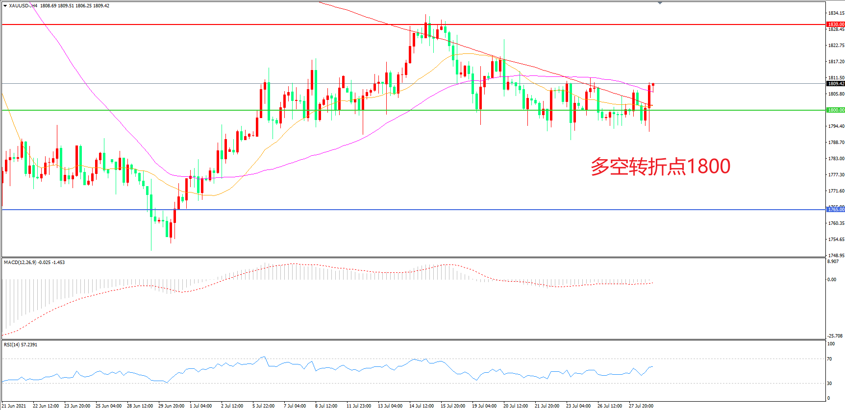 多空转折点:1800.00