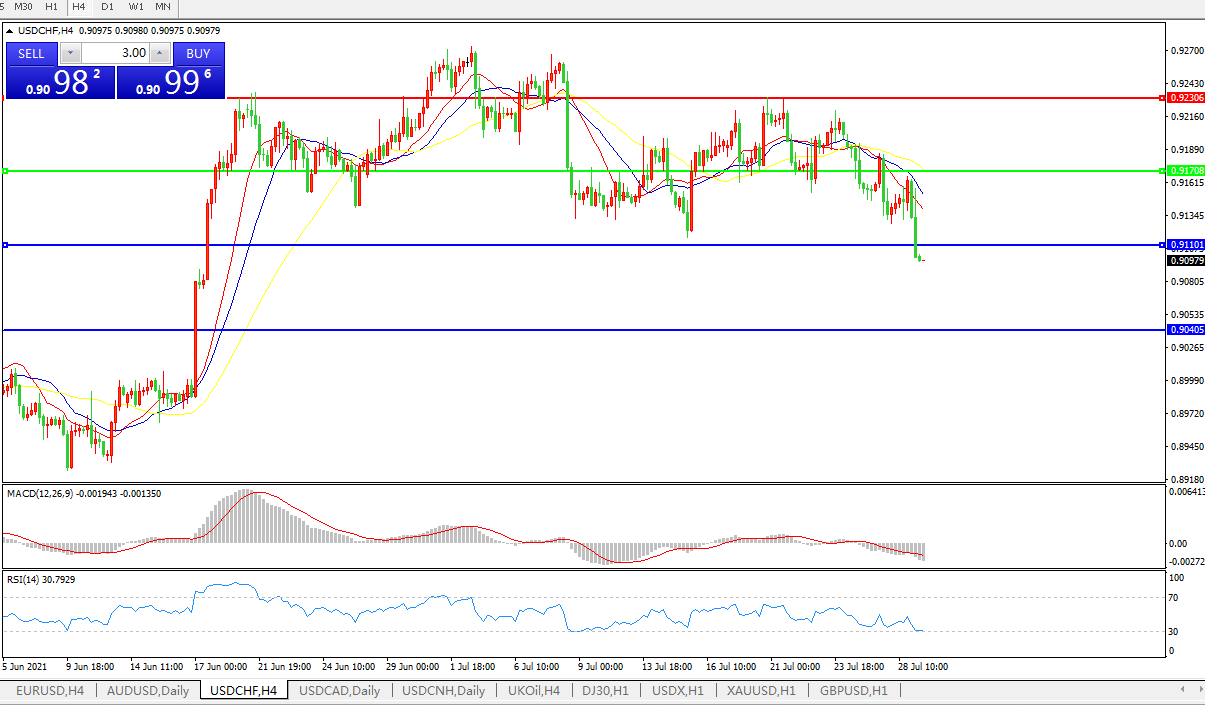 周三(7月28日)美元连续第三日下跌,尽管美联储发布了较乐观的政策声明,但美联储主席鲍威尔称尚未达到缩减购债所需要的“实质性进一步进展”这个目标;美元指数跌0.23%,至92.27,在美联储声明发布后一度升至92.77,随后回落。美国10年期国债收益率在鲍威尔讲话后从盘中高点回落,报1.23%,基本持平。