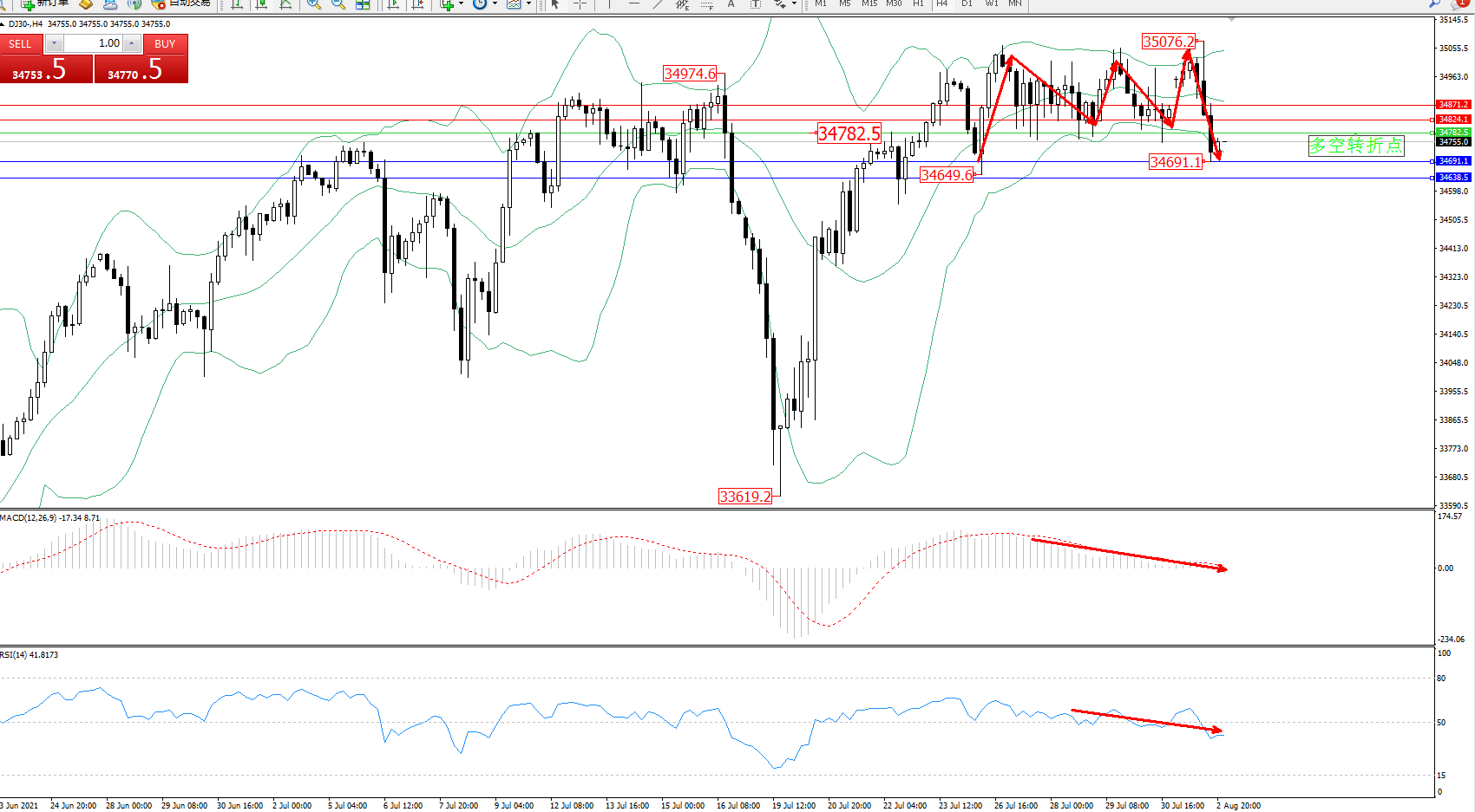 技术点评:高位长时间处于布林带指标通道内持续宽幅震荡中,空头动力多次来回试探布林带指标上下轨区间节点,布林带指标呈缓慢张口走势中,短期或有向下破位走势迹象,MACD指标处于0轴线附近弱势徘徊中,RSI指标空头动力跌破50均衡线进入空头区域整理中;
