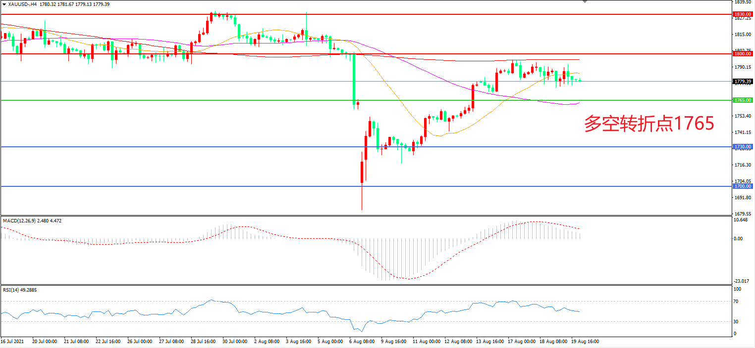 交易策略:  在1765.00之上看涨,目标1800.00           1830.00