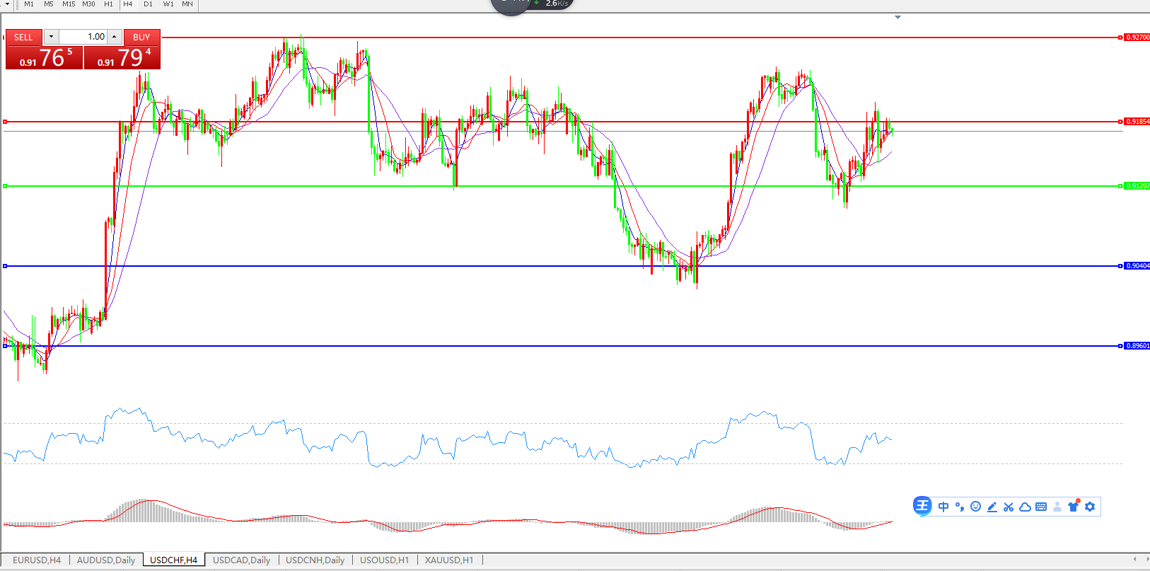 交易策略:0.9120上方看涨,目标0.9185、0.9270