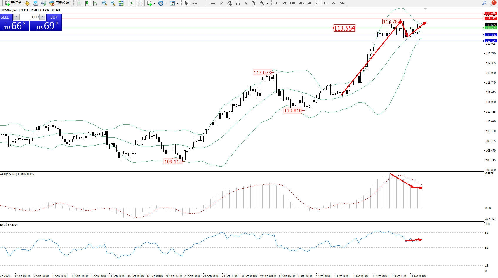 交易策略:113.554上方看涨,目标113.867、114.039