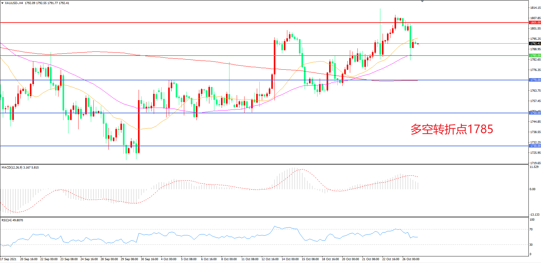 备选策略:在1785.00之下看跌,目标1770.00 1750.00