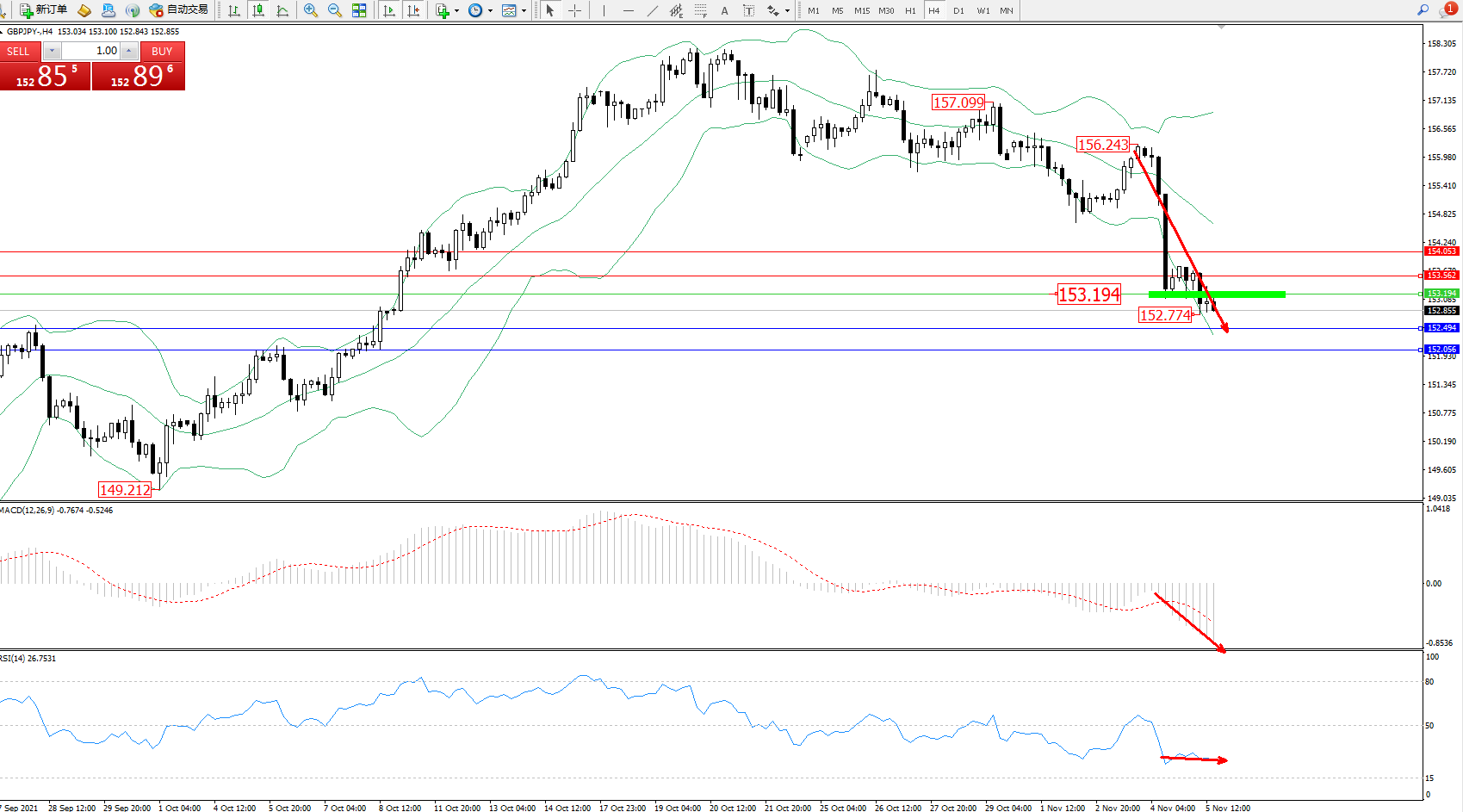 技术点评:空头动力延续布林带指标通道中下轨区间持续震荡下挫,低位抵达152.774位置后得到短暂支撑开始整理,下行趋势态势良好,短期未见止步迹象,布林带指标呈张口走势态势良好,短期有进一步向下移动态势,MACD指标空头区域持续震荡下行,RSI指标处于空头区域维持整理平移;