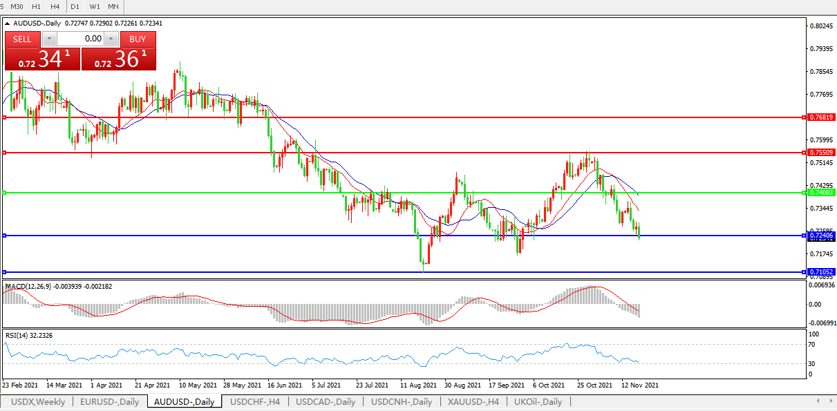 交易策略:0.7400下方看跌,目标0.7240、0.7100