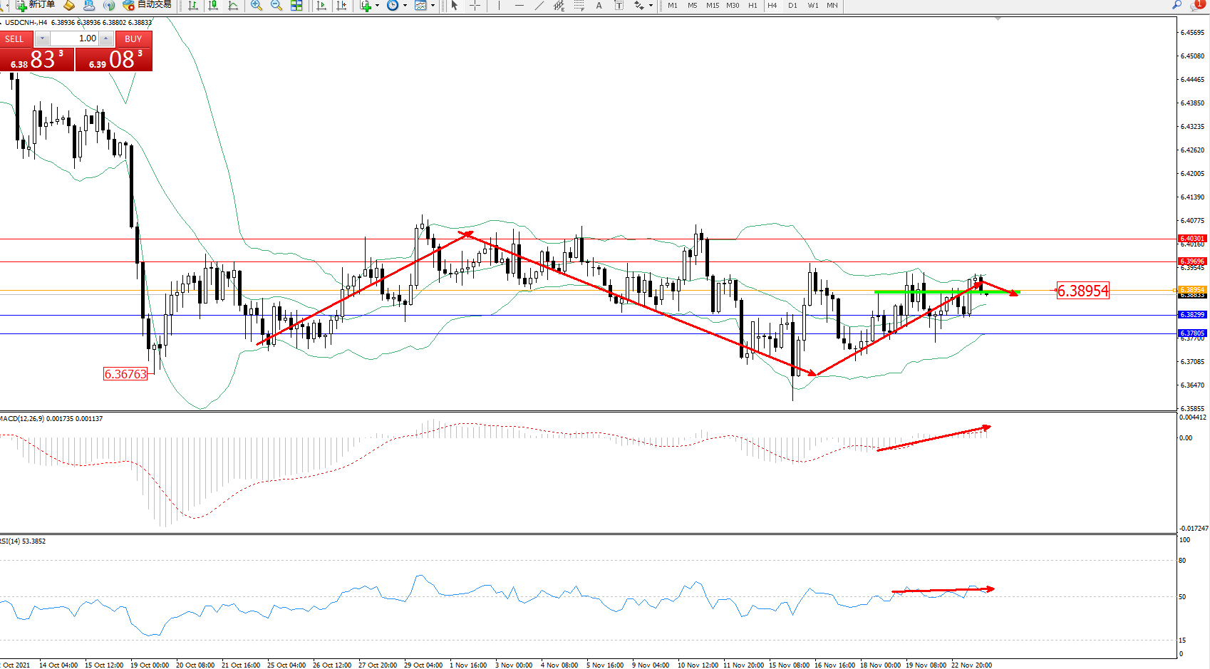 备选策略:6.38954上方看涨,目标6.39696、6.40301