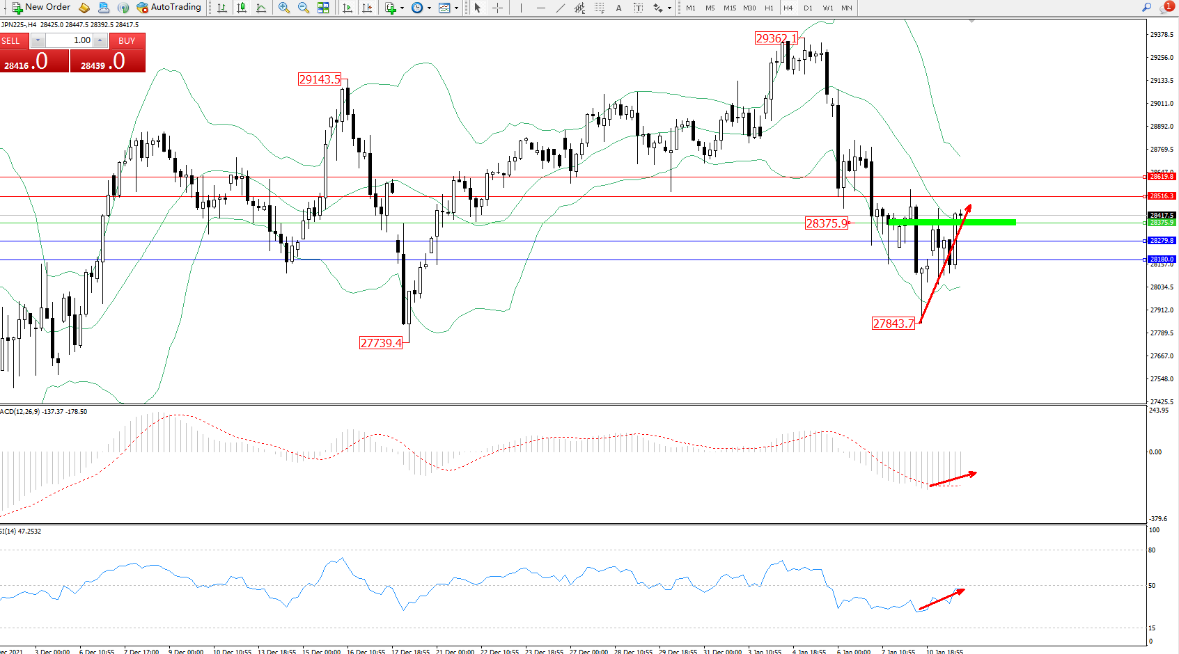 日经指数JPN225——4小时K线图显示: