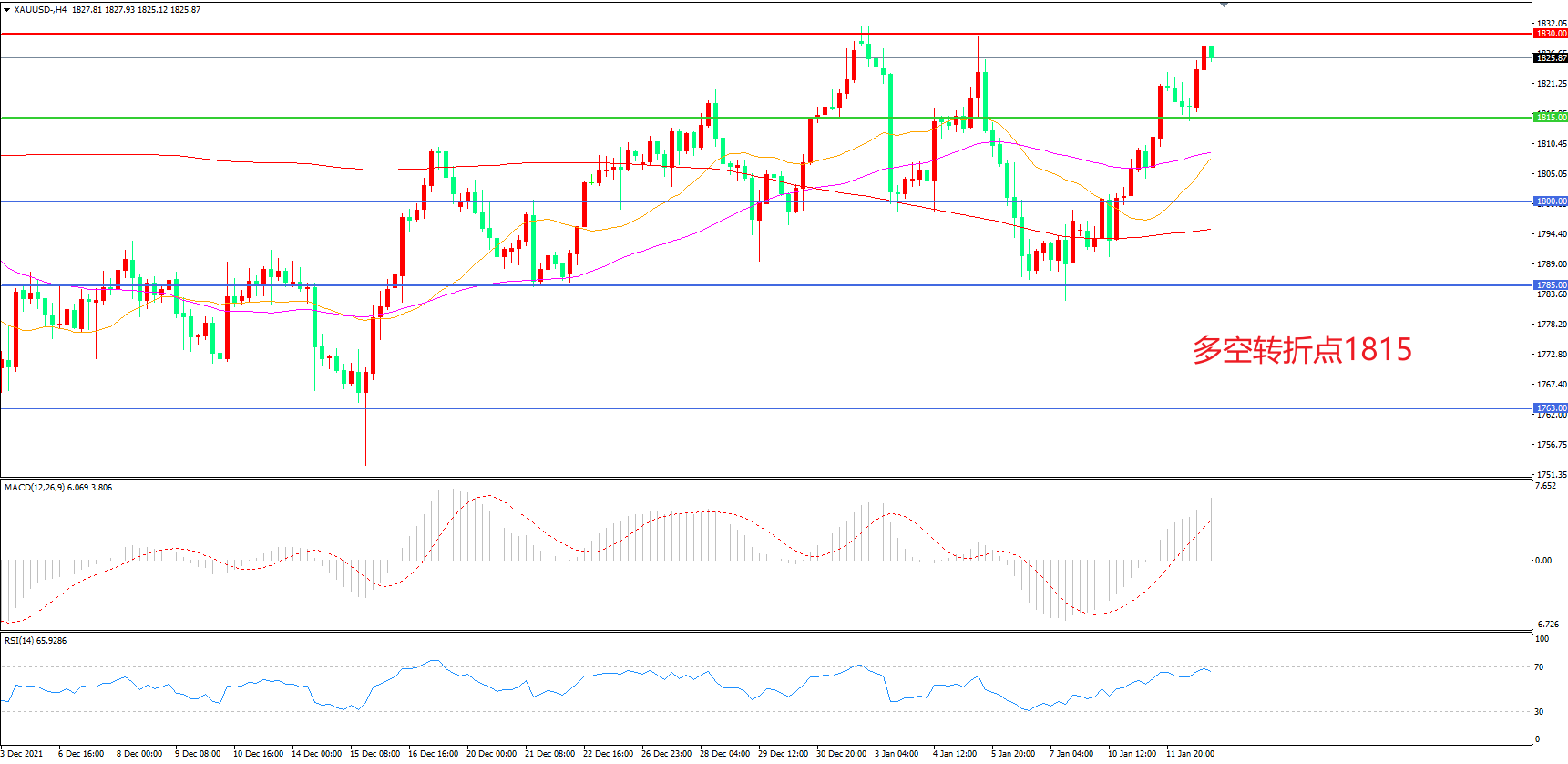 交易策略:在1815.00之上看涨,目标1830.00 1845.00