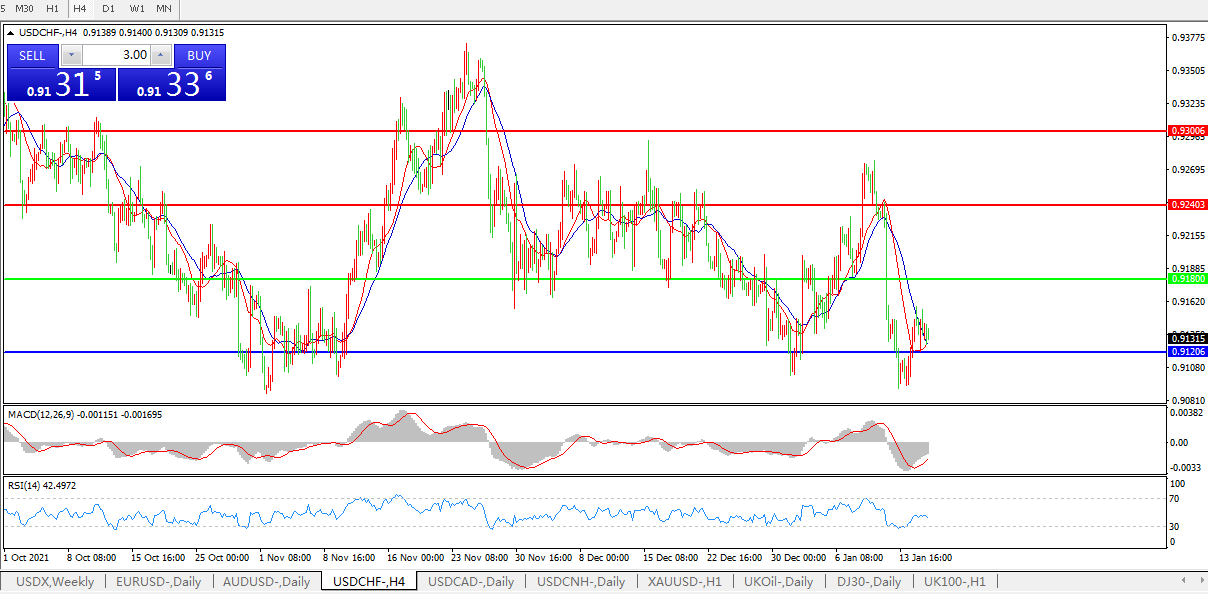 交易策略:0.9180下方看跌,目标0.9120、0.9040