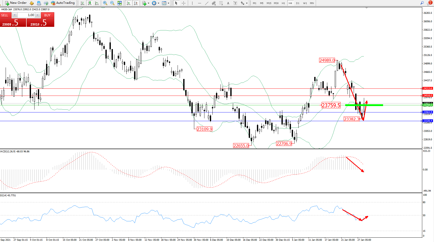 技术点评:空头动力延续不林指标下轨附近持续向下移动,低位抵达23382位置后得到支撑,多头动力伺机入场,强势拉升,布林带指标呈张口走势持续中,MACD指标空头动力维持震荡下行至0轴线下方徘徊,RSI指标处于50均衡线下侧弱势震荡后有回升迹象;