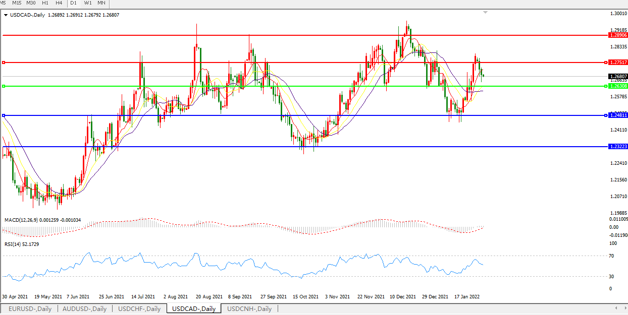 技术面简析:日图均线呈多头排列,汇价继续回落整理,MACD运行于0轴附近但量能不足,RSI快速回落,预计短期汇价大概率将回落整理后进一步上行。