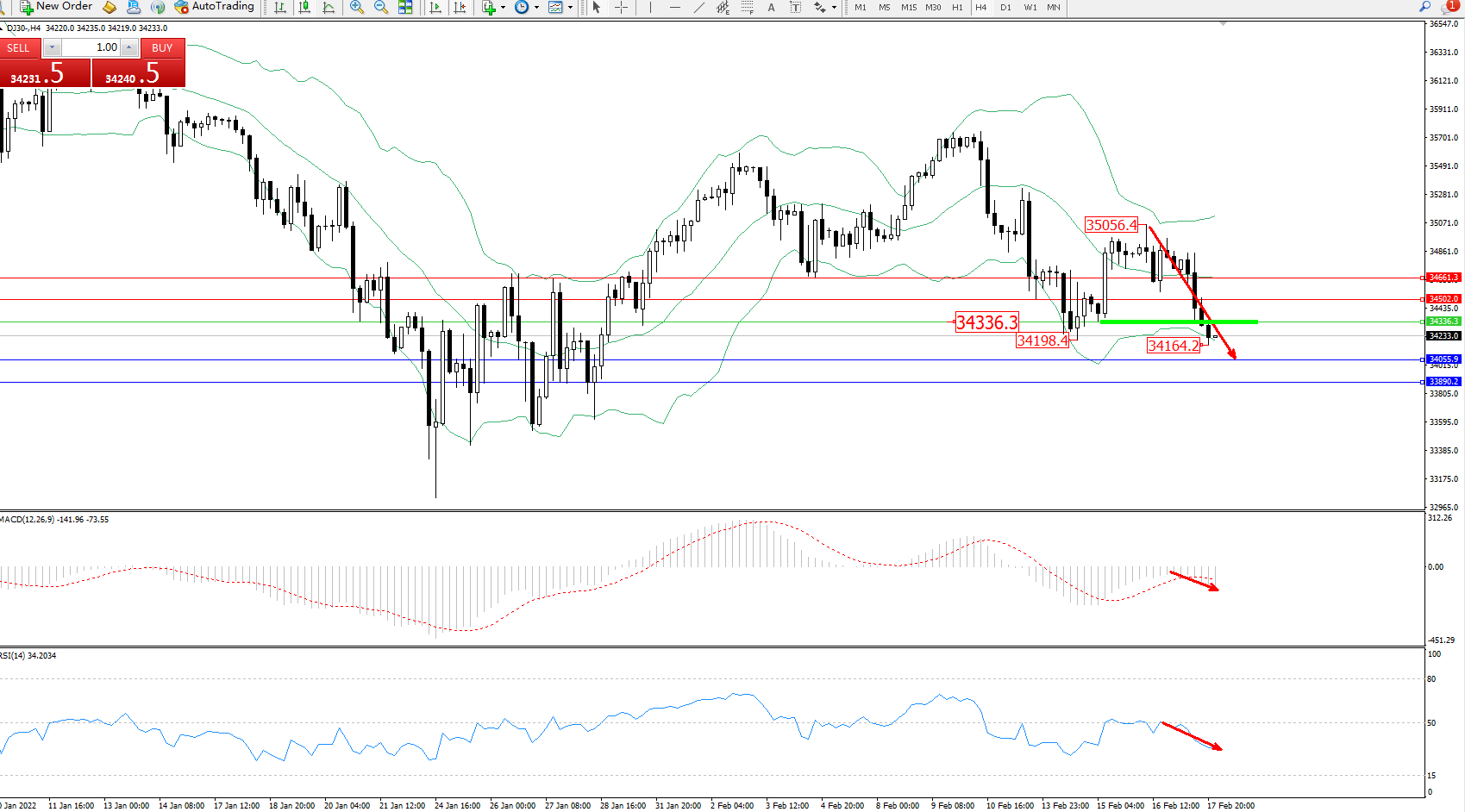道琼斯指数2月17日(周四)收盘下跌623.09点,跌幅1.78%,报34311.18点;三大股指全天走弱,道指强势下挫收跌,美联储布拉德表示,要打压通胀可能需要央行将基准利率调整至中性目标利率(他认为在2%左右)上方。布拉德称:“如果你想给通胀施加下行压力,你实际上必须达到中性利率——甚至超越。这是我的一个主要关切点,我们现在还不能这么做,但我们将来必须有能力做到这一点,以防通胀不如预期的那样温和。”此外其重申了此前观点,即美联储应该在7月1日之前累计加息100个基点,并在第二季度开始收缩资产负债表,以应对40年来最快的通胀。