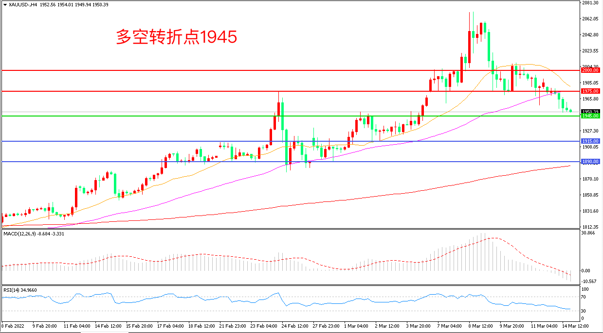 备选策略:在1945.00之下看跌,目标1915.00 1890.00