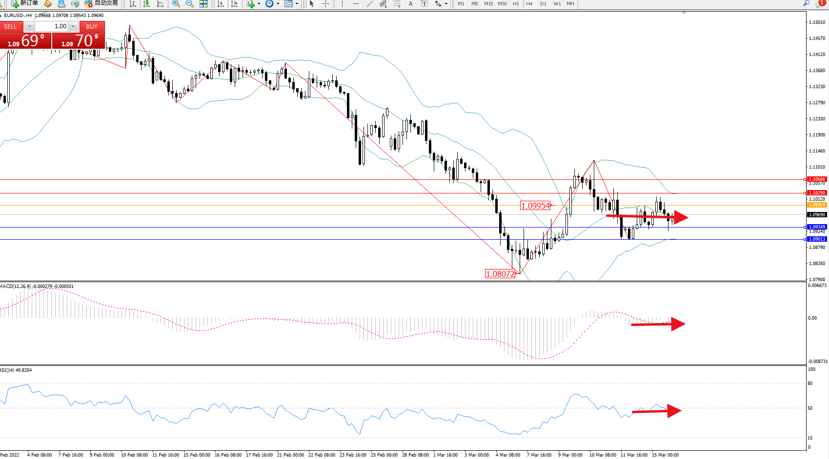 交易策略:1.09954下方看跌,目标1.09349、1.09013