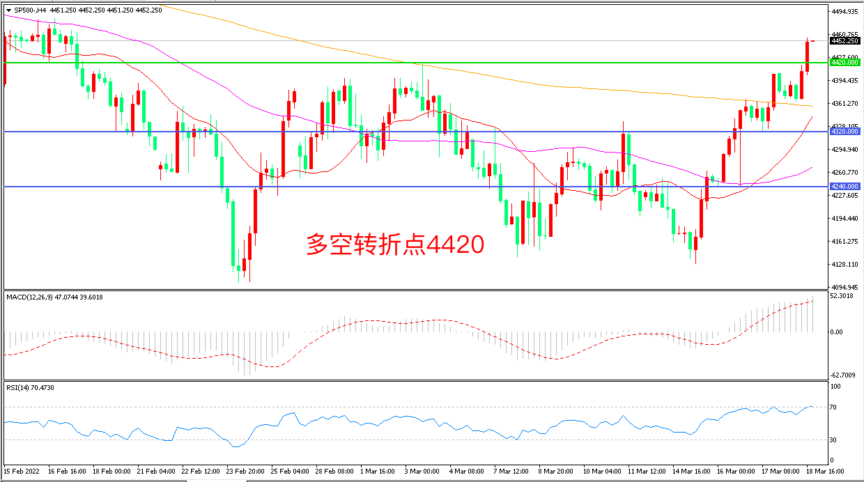 上周五(3月18日),美联储加息“靴子落地”, 原油高涨带动的能源板块领涨,标普500大幅上行,收报4452.25点。短期来看,最糟糕的时期可能已经过去,但美联储可能在收紧政策上更为激进以及俄乌冲突引发的地缘政治不确定性。股市是否会持续反弹变得扑朔迷离,重点关注本周经济数据表现。