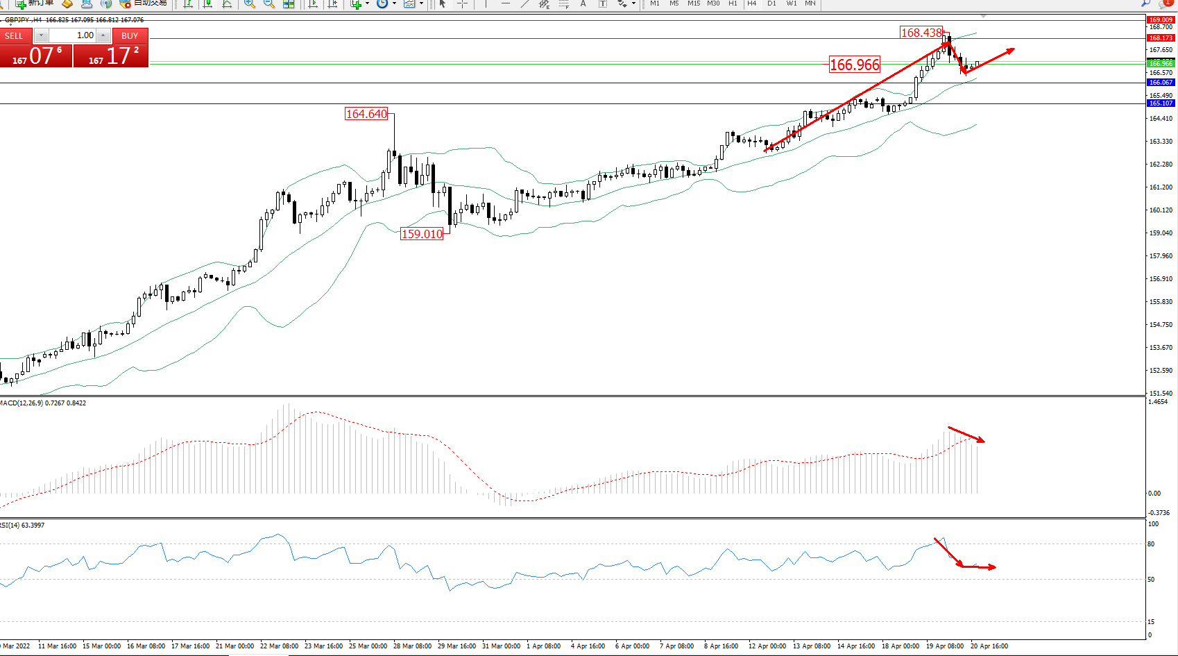 英镑兑日圆维持167.076附近震荡, 英国军事情报机构:自从基辅北部撤出后,俄罗斯在乌克兰北部的空中活动可能会保持低水平。俄罗斯对乌克兰各地城市的袭击显示出试图扰乱乌克兰增援部队和武器向该国东部移动的意图。俄罗斯在乌克兰东部边境的军事存在继续增加。随着俄罗斯军队试图突破乌克兰的防御,顿巴斯的战斗正在加剧。