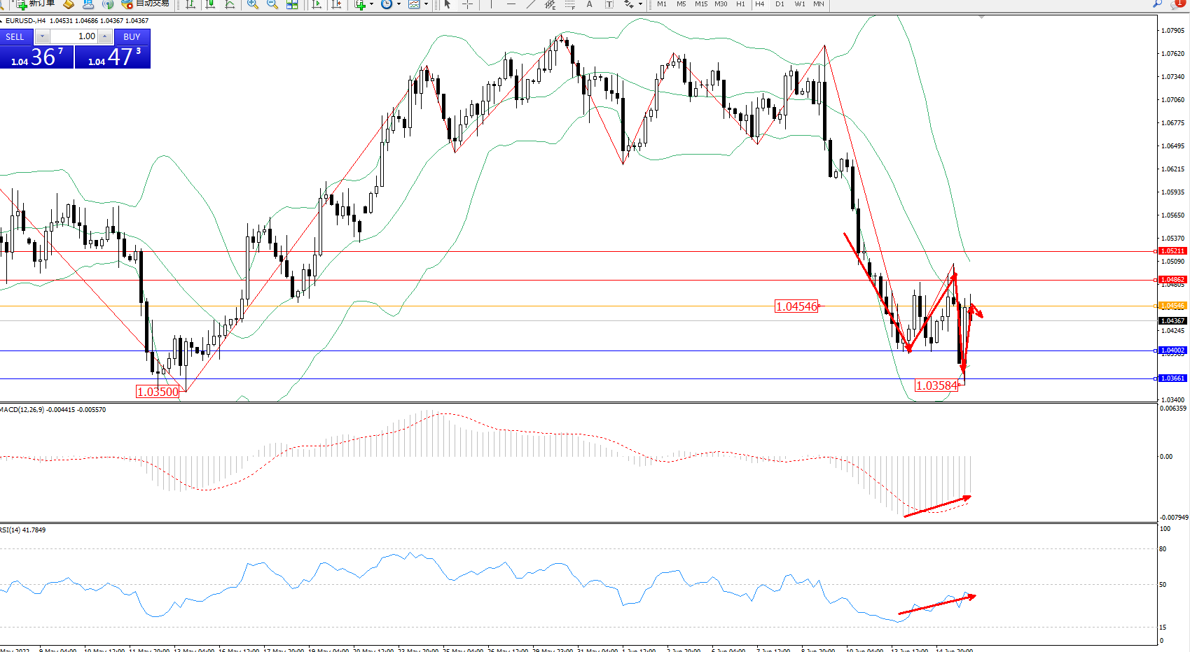 交易策略:在1.04546下方看跌,目标1.04002、1.03661