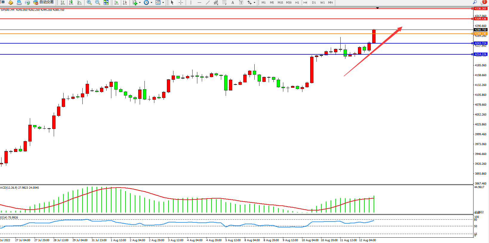 标普500指数8月12日(周五)收盘上涨71.23点,涨幅1.69%,报4278.50点;有迹象表明美国通胀可能已在7月触顶,这增加了投资者对牛市可能即将到来的信心,7月生产者物价环比下降。
