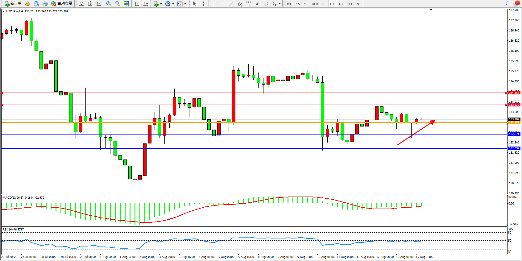 美元兑日圆维持133.287附近震荡, 美国国债收益率的交易迟滞,没有给多头提供多少动力。日本第二季度GDP数据低于预期,环比增长0.5%,低于预期的0.6%,但日圆还是获得了买盘,兑美元达到了日内高点。