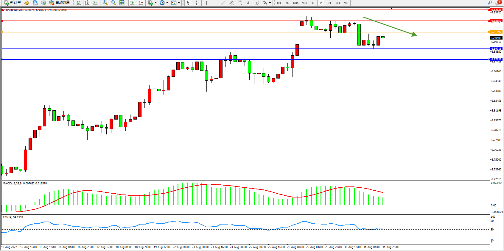 备选策略:6.91097上方看涨,目标6.92552、6.93925