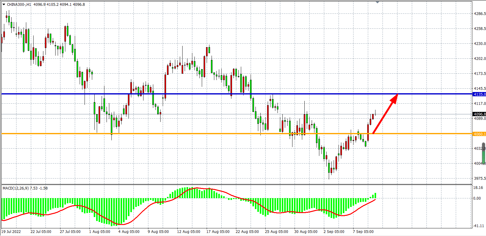 1小时图看,沪深300反弹强劲,上破阻力位4060,短期出现筑底形态,MACD于零轴之上开始量能放大,显示行情或进入新一阶段的反弹周期,目前4060转化为支撑,日内在该位之上看涨为主,上方阻力看4135-4200