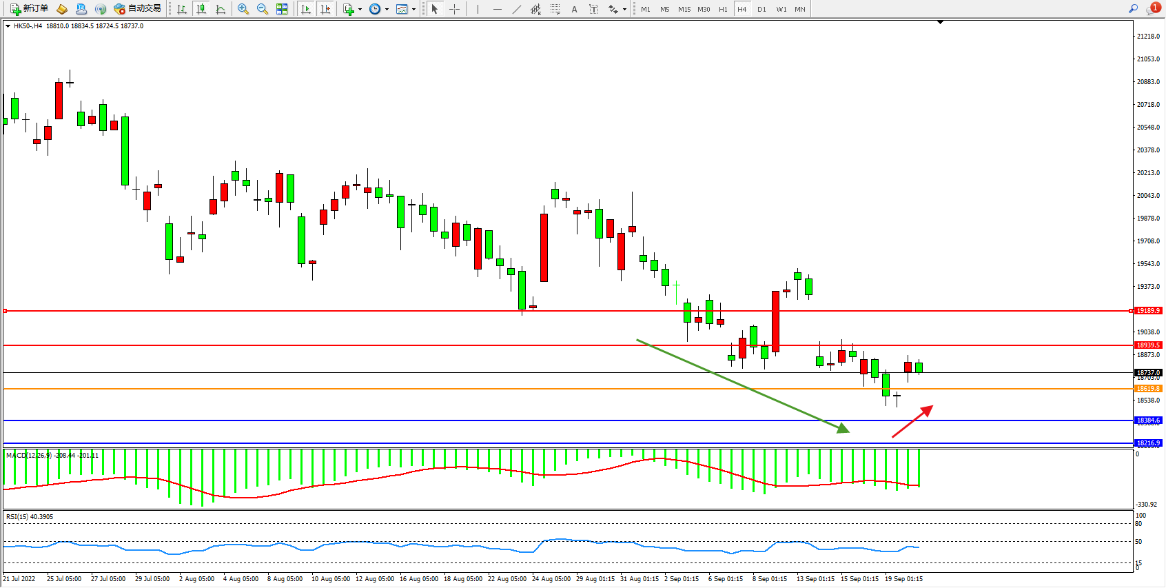 香港恒生指数9月20日(周二)收盘上涨215.45点,涨幅1.16%,报18781.42点;港股终见反弹,昨日齐刷阶段新低的三大指数全天维持高位震荡。恒生科技指数涨1.99%。连续下跌的科技股集体反弹,阿里巴巴涨约3%,快手、美团、腾讯涨超1%;中央拟研究推出支持澳门旅游业发展举措,濠赌股午后涨幅进一步扩大,新濠国际发展劲升超14%。南下资金净流入27.43亿港元,大市成交额萎缩至730亿港元。