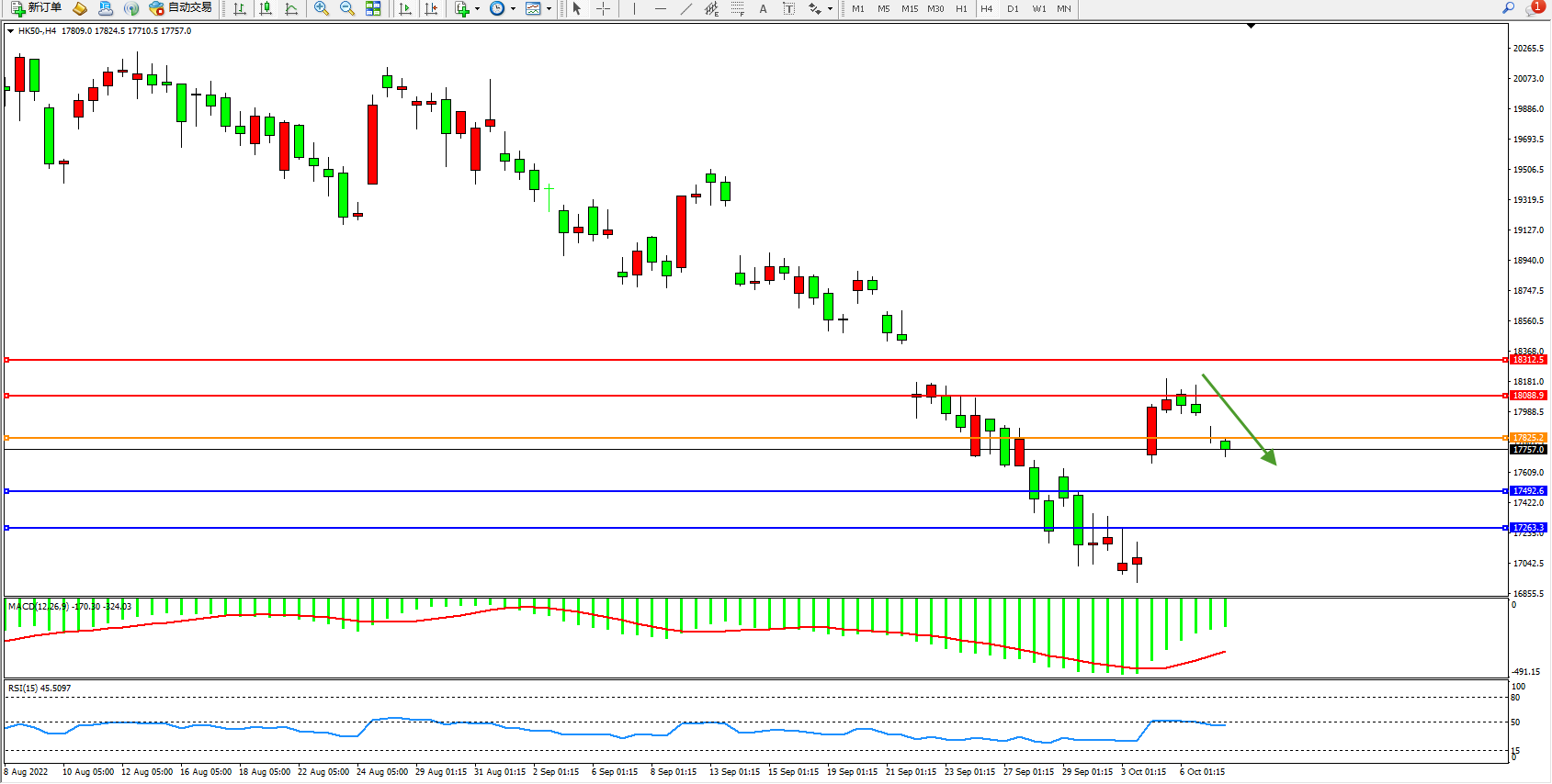 4小时图看:空头动力再度震荡下行,短期跌势或将再度延续,市场空头情绪涌现,MACD指标处于空头区域维持整理上移,RSI指标处于50均衡线附近弱势徘徊;