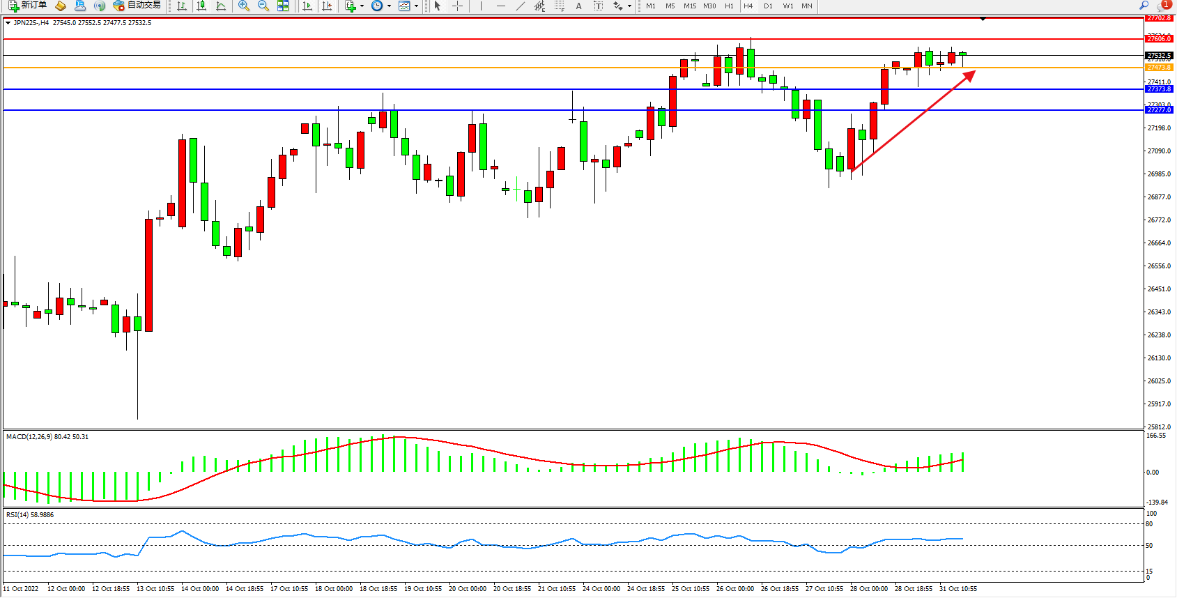 日经225指数10月31日(周一)收盘上涨464.30点,涨幅1.71%,报27569.50点。日本经济产业省METI:日本9月原油进口同比增长11.7%;日本9月石油产品总销售额同比下降7.3%;日本9月汽油销售额同比下降2.5%;日本9月煤油销售额同比下降10.5%。