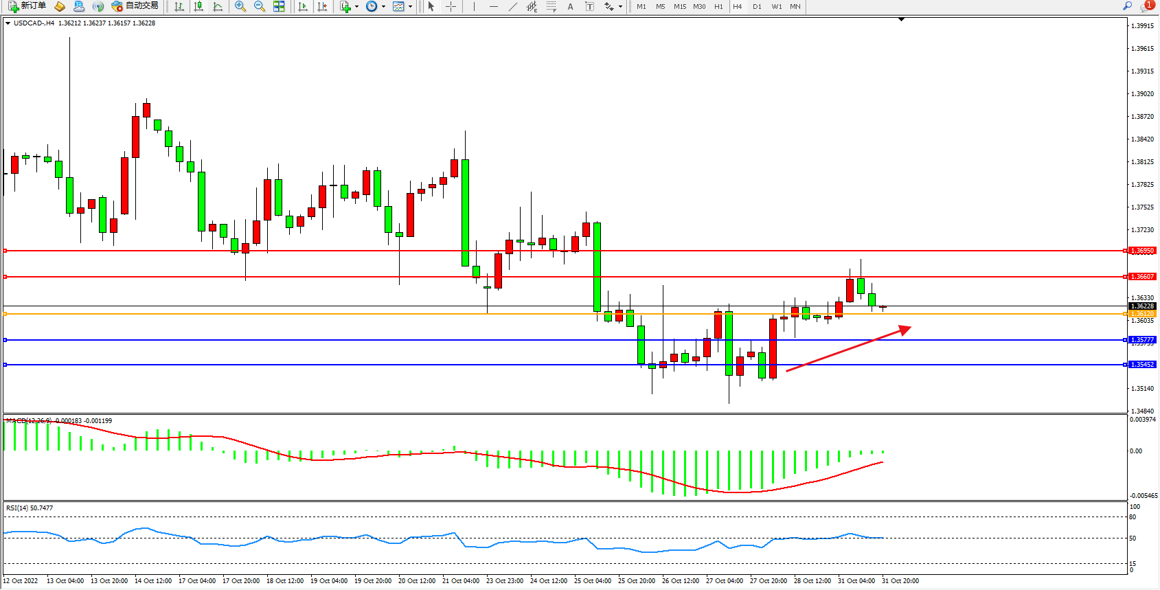 交易策略:1.36120上方看涨,目标1.36607、1.36950