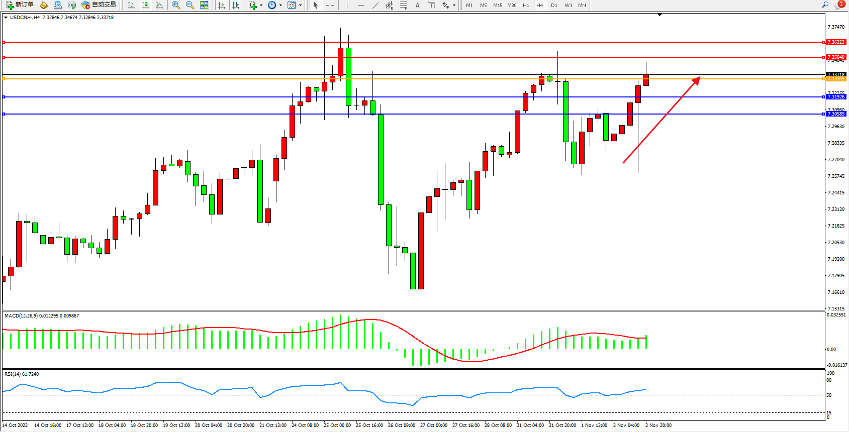 交易策略:7.33345上方看涨,目标7.35040、7.36223