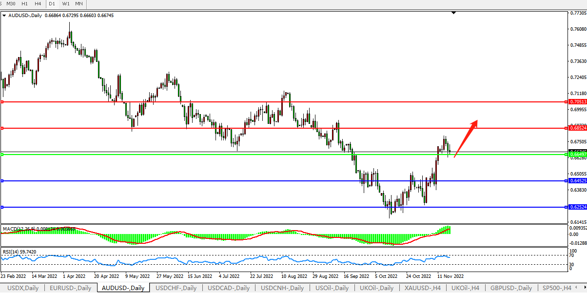 交易策略:0.6650上方看涨,目标0.6850、0.7050