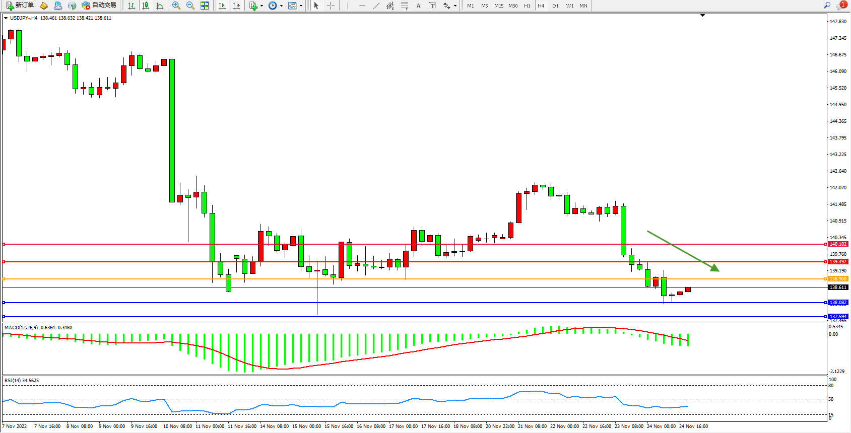 美元兑日圆维持138.611附近震荡,日本11月制造业活动萎缩速度为两年来最快,因强劲的通胀压力导致需求恶化。制造业活动22个月来首次出现月度下滑,给日本经济前景打上了一个问号,日本经济增长严重依赖与中国和其他国家的贸易。