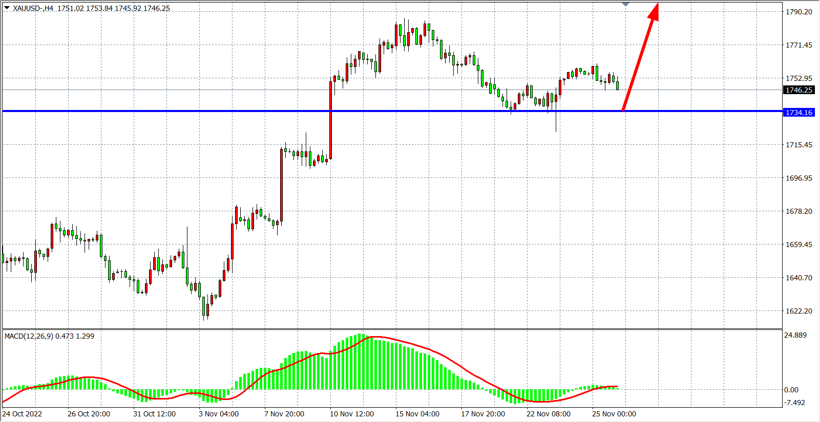 4小时图看,金价在1734支撑上开启反弹,同时MACD维持在零轴附近盘整,显示行情走势仍缺乏明显方向,当前支撑主要集中于1734附近,日内在该位之上继续看涨,上方目标看1765-1785。