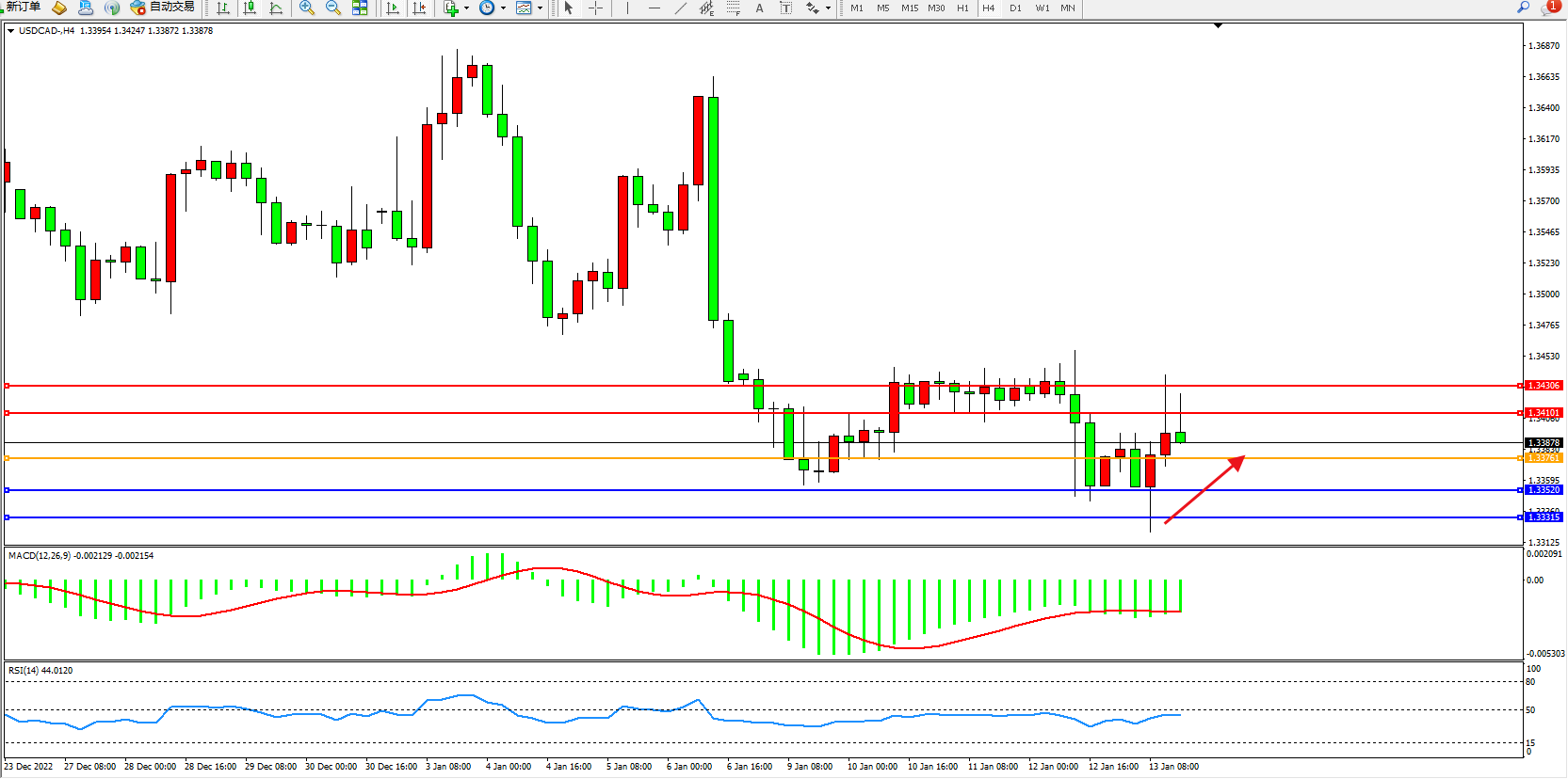 美元兑加元维持1.33878附近震荡,全球最大原油进口国中国的需求增长,且预期美国将放慢加息速度,美元持续走弱,本周油价震荡走高,市场也在为俄罗斯的石油供应受到更多限制做准备,俄罗斯因入侵乌克兰而受到制裁,后市油价存在进一步走高机会。