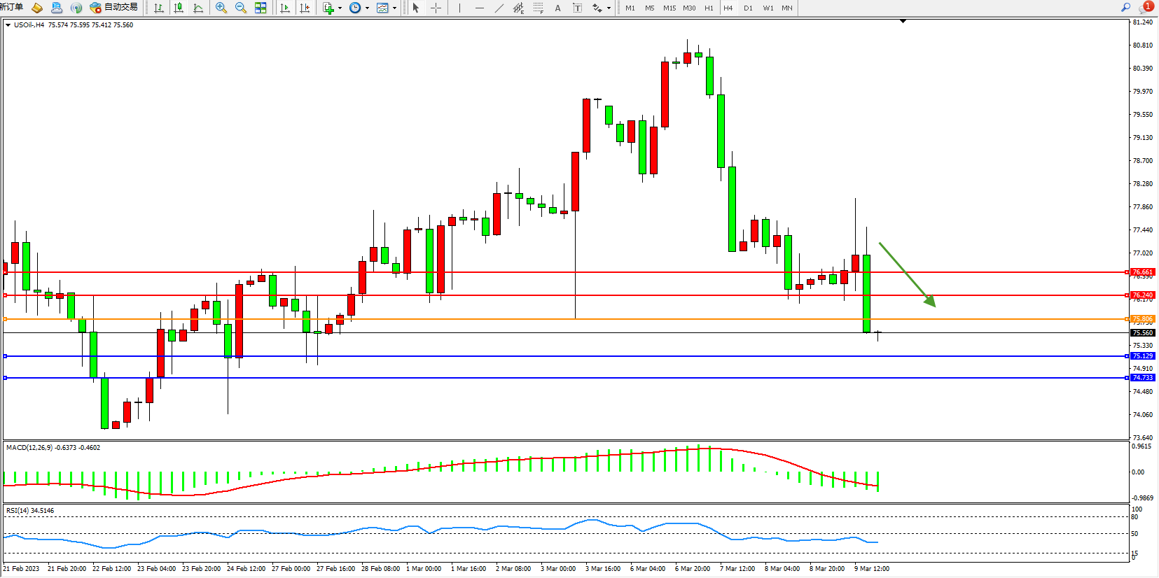 原油维持75.760附近震荡,目前石油市场约有80万桶/天的过剩,并预计由于中国重新开放导致需求复苏,到2023年下半年过剩将变成50万桶/天的短缺。